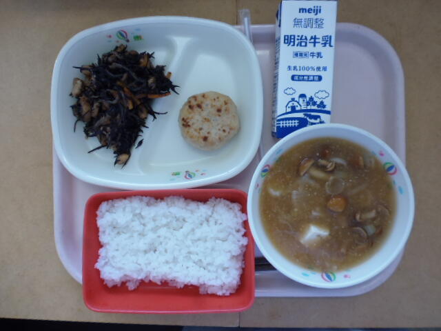 今日はカムカムデーです。切り干し大根は,大根を細く切って干したものです。若竹汁には,たけのこが入っています。どちらもかみごたえのある,食べ物です。よくかむことによって,満腹感をえるため、肥満予防にもなります。