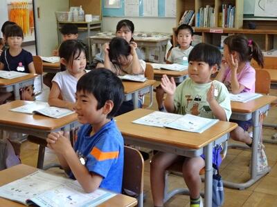【1年生】さくら市では、1・2年生の国語の時間に20時間をプラスして、MIM(国語の読みの時間)を行っています。1枚目の写真は、MIMの確認テストの様子です。集中して問題をといていました。