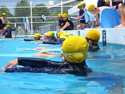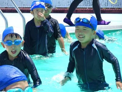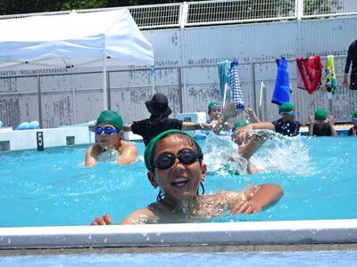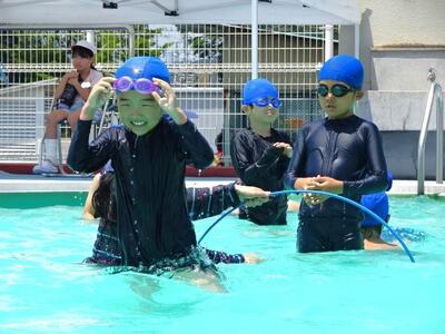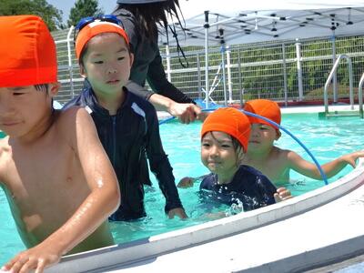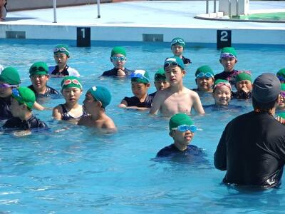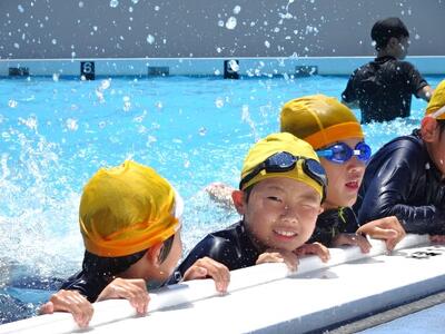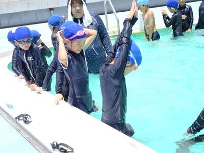 【2年生】1枚目と2枚目の写真は、体育の「もぐる・浮く運動遊び」の活動の様子です。さすが2年生です。もぐるのは当たり前のようにできます。けのびもきれいなフォームでできています。