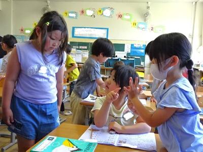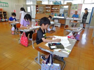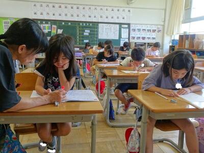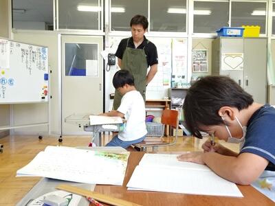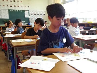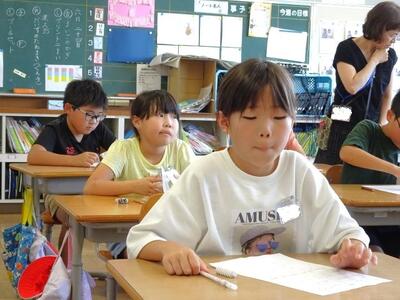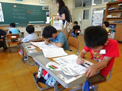 【4・5・6・7組】とても真剣に学習しています。いくつかの学年でクラスが構成されていますから、クラスメートが校外学習や交流学習でいないときがあり、たまにマンツーマンで学習することもあります。