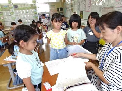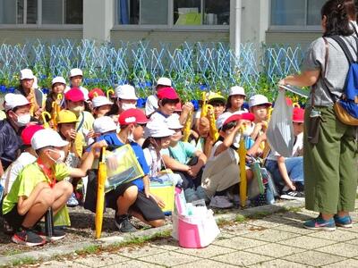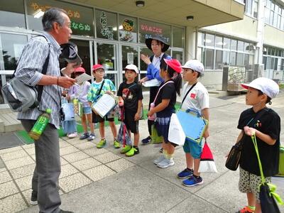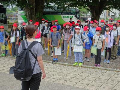 【2年生】今日は、2年生が楽しみにしていた生活科の「地域探検」の日です。この日のために集まってくださった支援ボランティアの方々と一緒に、計画した見学場所に向かいました。地域の皆様、大変お世話になりました。