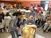 11月21日、6年生がにこんきつれ荘を訪問しました。歌や合奏の披露、じゃんけん肩もみやボール送りなどのゲームを通して、高齢者と交流しました。