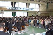 昼休みに体育館で音楽集会を行いました。全校生で「ビンゴ」の合唱と「冬の歌」の合唱・合奏をしました。6年生8名が打楽器を担当し、リズムをとりながら楽しく歌うことができました。