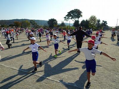 朝の活動で実施しているスポッチャですが、今回から持久走になりました。1、2年生は3分間、3、4年生は4分間、5、6年生は6分間、自分のペースで走ります。今日は、2、4、6年生がチャレンジしました。体育委員の6年生がビブスを着て、ゆっくり、普通、速く、それぞれのペースメーカーになってくれていました。