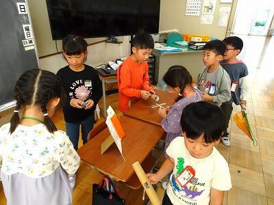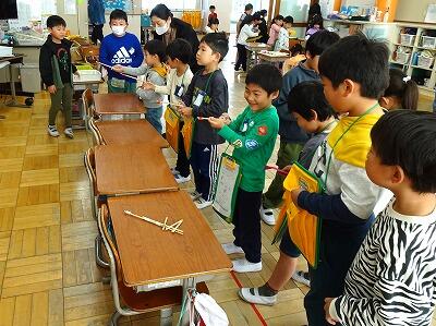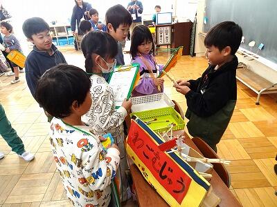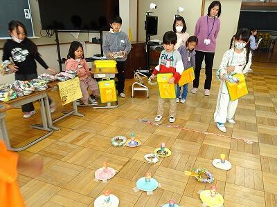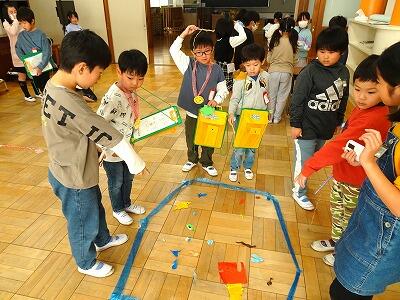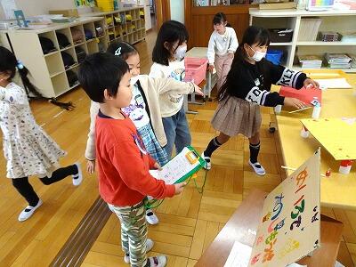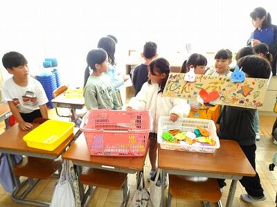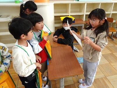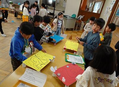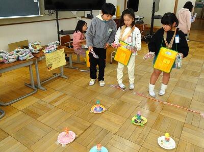 昨日、2年生が1年生を招待しておもちゃフェスティバルを開きました。2年生は、この日のためにグループで話しあい、協力して準備を進めてきました。当日は、1年生に優しく説明しながら、楽しく遊んでもらうことができました。