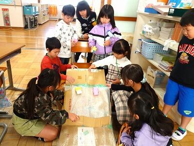 2年生は、図画工作「まどをあけたら」の学習でカッターナイフを使います。今日は授業応援隊の方にもお手伝いしていただき、実際にカッターナイフを使っていろいろな「窓の形」を画用紙に開けてみました。最初はぎこちないところもありましたが、授業の終わり頃にはカッターナイフを上手に扱えるようになってきました。この後、作品作りに取り組んでいきます。どんな作品ができるのか楽しみです。