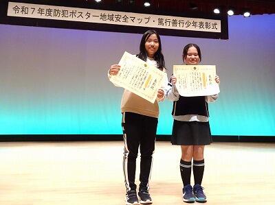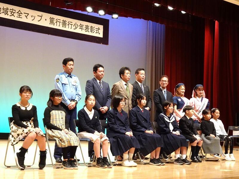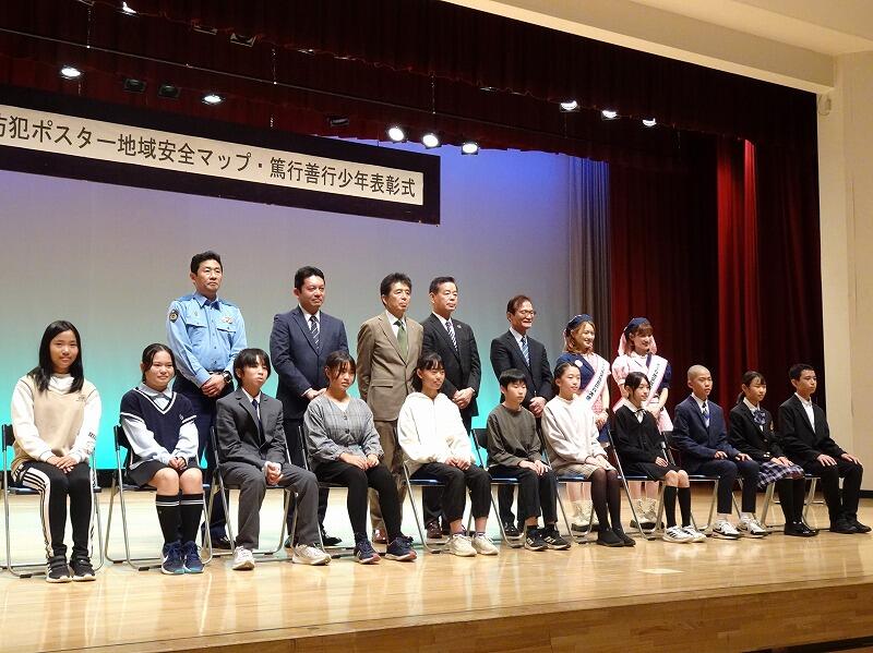 防犯ポスター地域安全マップ・篤行善行少年表彰式