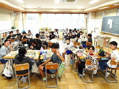 今日の授業のようすです。1、2、5、6年生で図画工作の授業を行っていました。それぞれが工夫を凝らして、自分の思いを表現していました。