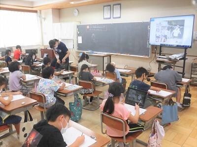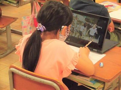 (学童の児童は教室で行いました。真剣に学習していました。)
