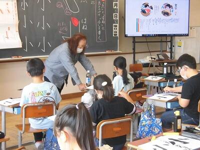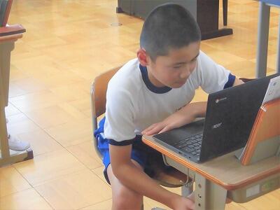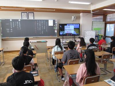 5年生は、学力調査のパワーアップシートを使って国語の学習を行いました。先生の説明やヒントを聞きながら、プリントの問題に取り組みました。質問があるときは「挙手」ボタンで意思表示をするなど使い方もずいぶん向上してきました。