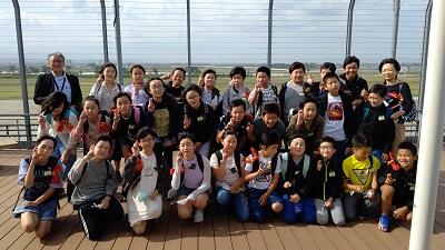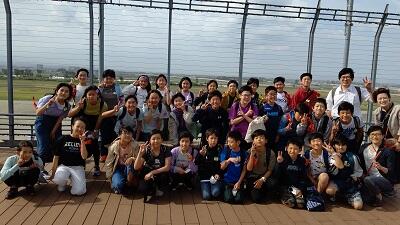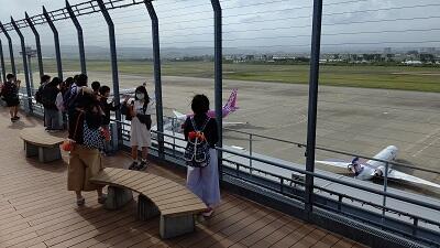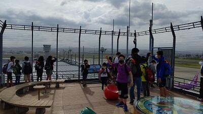 仙台空港の屋上です。風が強いなか、 飛行機が飛び立つ場面を見ることができました。この後、 松島に向かいます。
