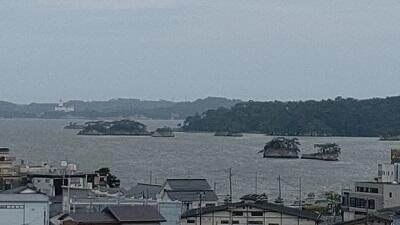 予定どおりにホテルに到着しました。南側の部屋からは、 松島の景色が一望できます。