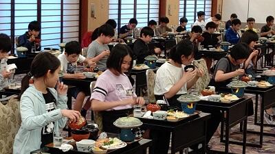 夕食も豪勢です。子どもたちは、 いただきますの挨拶と同時に、元気よく食べ始めました。