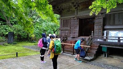 雨と風が強いため、見学場所を再検討してから、グループ活動を始めました。瑞巌寺や五大堂などを見学したり、昼食を食べたリしていました。また、集合場所の物産館では、最後のお土産を買い求める姿が見られました。