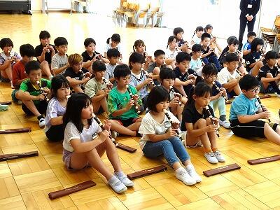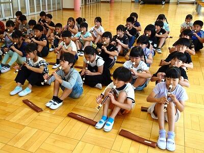 3年生から音楽でリコーダーの学習が始まります。今日はリコーダー講師の先生に来ていただき、タンギングや指使いについて、楽しく教えていただきました。あっという間に上手にタンギングができるようになりました。最後には、講師の先生のすばらしい演奏も聞かせていただきました。