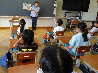 今日の朝の活動は、読み聞かせでした。図書応援隊の方がいろいろなジャンルの本を読み聞かせをしてくださいました。