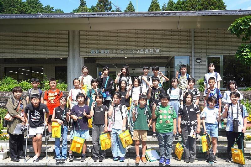 昨日、6年生が社会科の校外学習で「那須風土記の丘資料館」に行ってきました。縄文時代や弥生時代、古墳時代などの出土品や当時のくらしを再現した資料などを見学してきました。また、見学だけでなく、火起こし体験や勾玉作りの体験をしたり、近くにある国史跡の駒形大塚古墳も見学してきました。