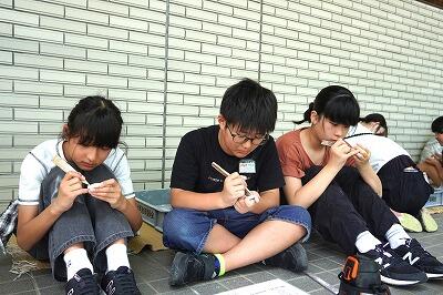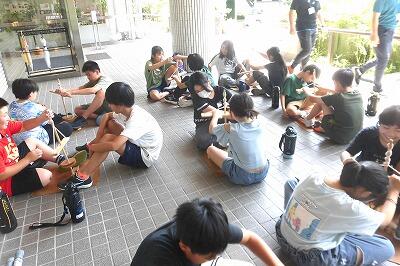 朝食です。3回目の食事なので手際よく用意ができるようになりました。おかわりしてたくさん食べている子もいました。この後の活動ですが、雨のため「砂浜活動・砂の造形」ではなく「ポセイドンからのメッセージ」に変更する予定です。