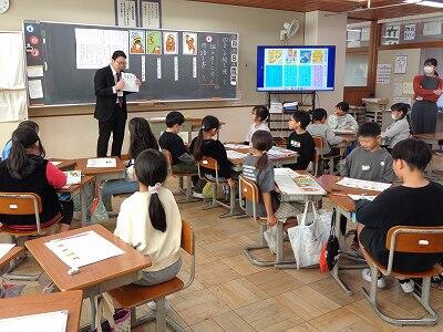4年生は総合的な学習の時間に福祉の勉強をしています。月曜日も1組が、火曜日の2組が、市の高齢課の方々にお出でいただき認知症サポーター養成講座を受講しました。高齢者の方や認知症の方の特徴や接し方などについてお話を聞きました。これからの学習や生活に生かしていってほしいと思います。