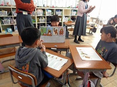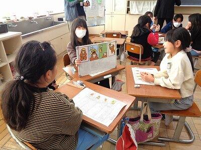 これまで3年生は、国語の学習で「1年生が本を好きになってくれるような読み聞かせをしよう」と役割分担をして話し合いを進めてきました。今日は、話し合ってきたことをもとに、実際に1年生に読み聞かせをしました。読み聞かせをする3年生は、少し緊張しながらも、自分の分担箇所を一生懸命読んでいました。1年生もうれしそうに真剣に聞き入っていました。