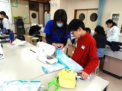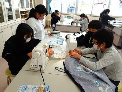 6年生は、家庭科「思いを形にして 生活を豊かにして」の学習で、トートバッグの製作に取り組んでます。5年生の時にもミシンを使って作品を作っているので、今回は手際よく作業を進めていました。今日は授業応援隊の方にもお手伝いいただき、中にはトートバッグが完成した児童もいました。