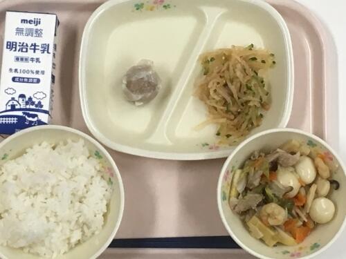ごはん 牛乳 ポークしゅうまい キムチあえ はっぽうさい