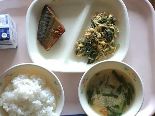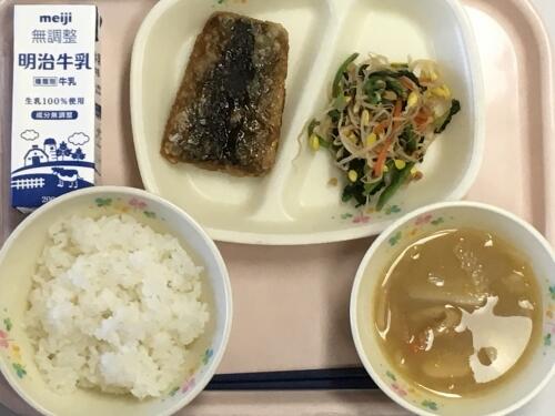 ごはん 牛乳 さばのてりやき ごまあえ にらとかんぴょうのかきたまじる