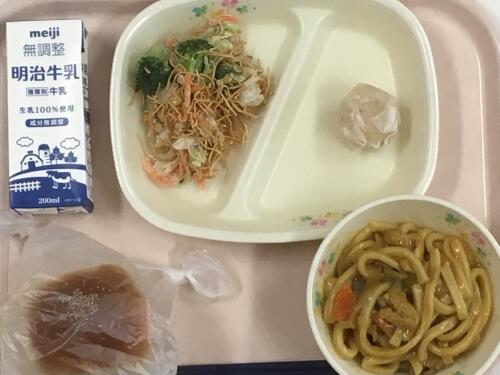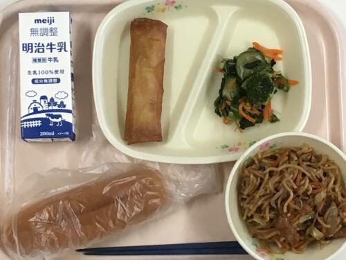 コッペパン 牛乳 はるまき ちりめんじゃこのサラダ やきそば