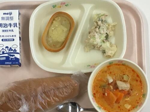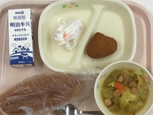 コッペパン フルーツクリーム 牛乳 やきぐりコロッケ カレースー