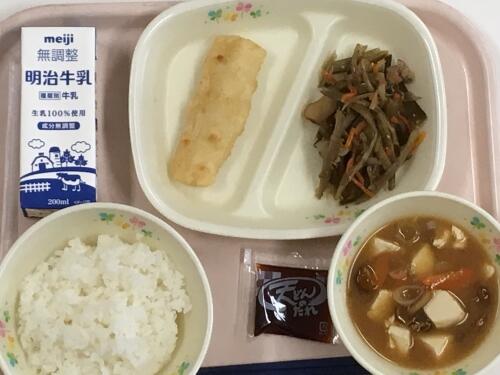 ごはん 牛乳 シイラのカレーマヨやき きりぼしだいこんのにもの じゃがいもとニラのみそしる
