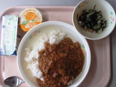麦ごはん 牛乳 まいたけカレー ひじきとまめのサラダ みかんゼリー