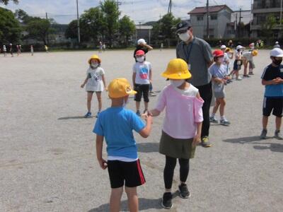 縦割り班活動がありました。校庭では、ドッジボールやだるまさんがころんだなどを、1年生から6年生までのみんなで楽しく行っていました。上学年の児童が、1年生など下級生が楽しくできるよう考えながら遊んでいる姿が数多く見られ、頼もしさを感じました。