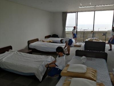 海浜自然の家に着きました。入所式では、しっかり話を聴き、あいさつも元気に行いました。いよいよ1泊2日の宿泊学習がスタートです。