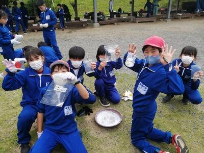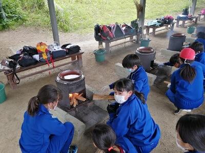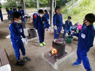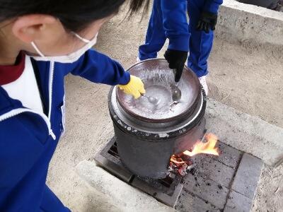塩づくりを行いました。火をおこすのに苦労していたグループもありましたが、海水から塩を取り出しました。後片付けもしっかりできて感心しました。