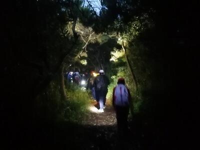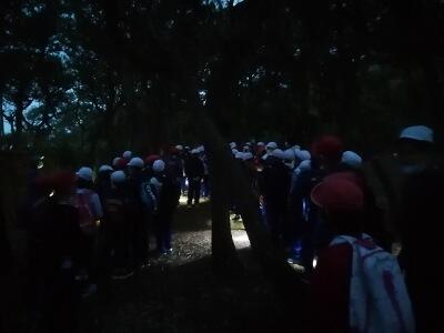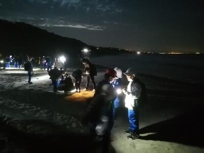 夜のプラグラムは「ナイトハイク」です。コースは「わくわくコース」。約1時間、夜の海辺を歩いて楽しみました。