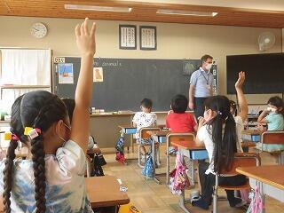 本校には、ALTが2名在籍しており、5・6年生の外国語や1~4年生の外国語活動の時間にかならずALTが入り、本場の外国語を話してくれています。そんな外国語・学国語活動の授業を2つ参観しました。