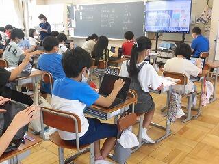 放課後にオンラインチャレンジ授業を行いました。各学級でGooglemeetで子どもたちと繋がり、やりとりをしていました。各学年ごとに課題に取り組み、オンラインでの学びを体感していました。