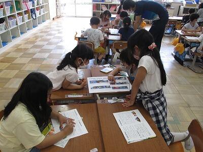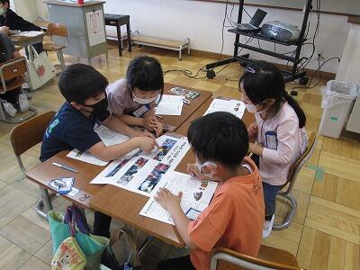 1年生の様子です。グループになって話し合いをしているのでのぞいてみると、遠足の班ごとに集まって、班のめあてを決めたり、動物園で乗る乗り物などを話し合ったりしていました。どの班も仲良く、楽しそうに話し合っていました。「めあてはさっき~さんが言っていた~にしようよ。」「次に乗る乗り物は何がいい?」など本当に楽しそうでした。「先生!私たちの班ではね、一番はじめに~に乗って、次に・・・」と自分たちで決めたことを伝えてくれました。1年生も入学して2ヶ月。話し合いをしながら自分たちで決めることがしっかりできていて、うれしく思いました。