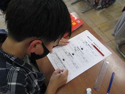 3年生が、先日行った体力テストの結果を振り返っていました。自分の目標と結果を見比べたり、今後どのようにして体力を向上させるかなどを記録していました。どの子も真剣に自分の記録に向き合っていたのが印象的でした。