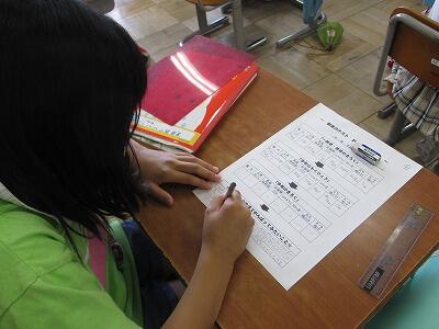 3年生が、先日行った体力テストの結果を振り返っていました。自分の目標と結果を見比べたり、今後どのようにして体力を向上させるかなどを記録していました。どの子も真剣に自分の記録に向き合っていたのが印象的でした。