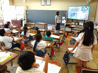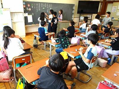 4年生は総合的な学習の時間に福祉の勉強をしています。月曜日も1組が、火曜日の2組が、市の高齢課の方々にお出でいただき認知症サポーター養成講座を受講しました。高齢者の方や認知症の方の特徴や接し方などについてお話を聞きました。これからの学習や生活に生かしていってほしいと思います。