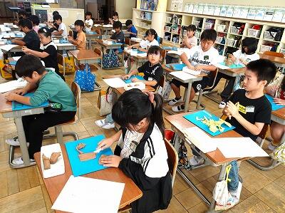 2年生は、図画工作「まどをあけたら」の学習でカッターナイフを使います。今日は授業応援隊の方にもお手伝いしていただき、実際にカッターナイフを使っていろいろな「窓の形」を画用紙に開けてみました。最初はぎこちないところもありましたが、授業の終わり頃にはカッターナイフを上手に扱えるようになってきました。この後、作品作りに取り組んでいきます。どんな作品ができるのか楽しみです。