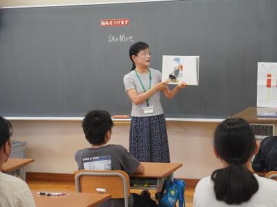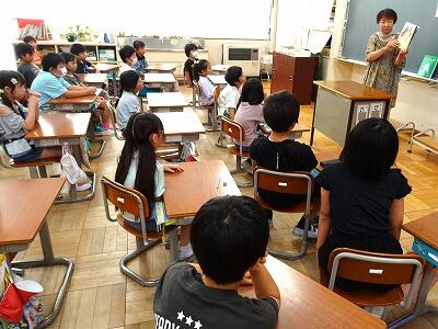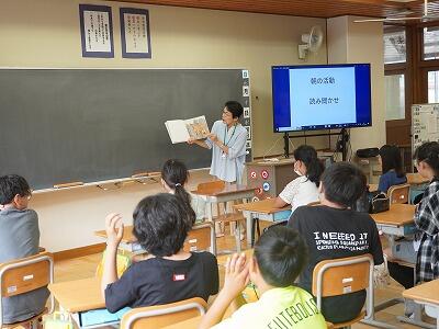 今日の朝の活動は、読み聞かせでした。4回目となる今回も、図書応援隊の方がいろいろなジャンルの本を読み聞かせをしてくださいました。子どもたちは、みんな楽しく聞かせていただきました。