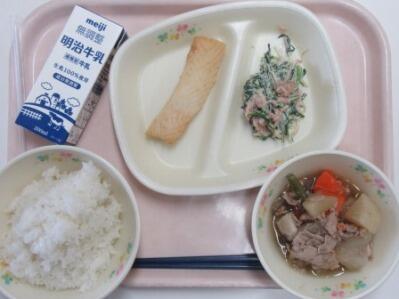 ごはん ☆牛乳 いかのみそづけやき ◇しゅんぎくのツナあえ ◇ぶたにくとだいこんのにもの