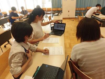 今年度2回目のICT研修を行いました。各学年でのICT活用の様子を紹介し合いました。発達段階に応じて様々な活用がされており、児童の学力向上のためのICT活用のアイデアがたくさん見られました。