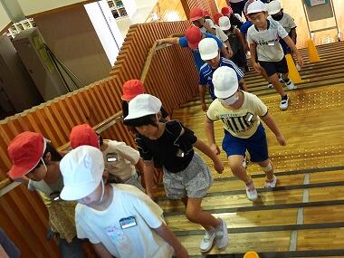 最後に、水害が起こったときの避難の仕方やハザードマップのを確認をしました。1、2年生は実際に垂直避難も体験しました。