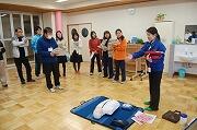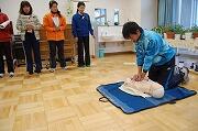 放課後、職員を対象にAEDを使った心肺蘇生の講習会を行いました。音声ガイドで丁寧に手順を説明するので、使いやすくなりました。本校では昇降口を入ってすぐのところにAEDが設置してあります。