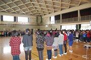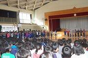 昼休みに体育館で音楽集会を行いました。全校生で「ビンゴ」の合唱と「冬の歌」の合唱・合奏をしました。6年生8名が打楽器を担当し、リズムをとりながら楽しく歌うことができました。