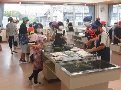 家庭科室から、いいにおいがしてきます。行ってみると、6年生が家庭科の調理実習をしていました。「朝食から健康な一日の生活を」という単元の学習で、いためる調理をしておかずを作っているところでした。ジャガイモをゆでたり、ベーコンをいためたりと、グループで協力しながら、手際よく調理を行っていました。