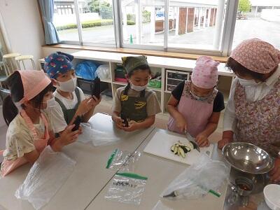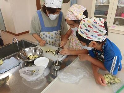 3年生が総合的な学習の時間で「なすの漬け物講座」を行いました。授業応援隊の方々の協力を得て、農園で自分たちで育てたナスで漬け物を作りました。お家で食べるのが楽しみです。